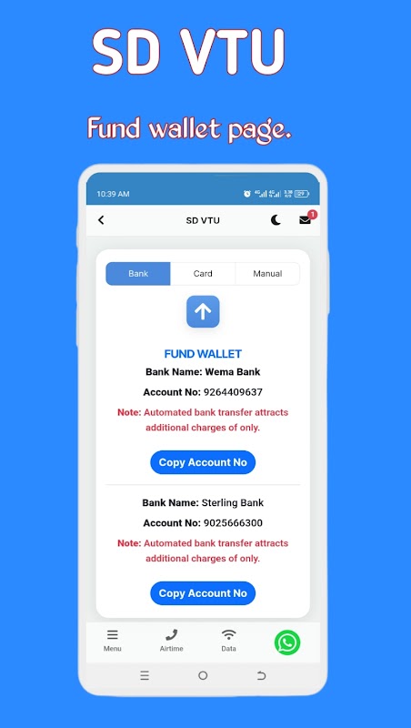 We offer instant recharge of Airtime, Data bundle, Cable TV (DStv, GOtv, & Startimes), Electricity Bill Payment, Exam pins and More.