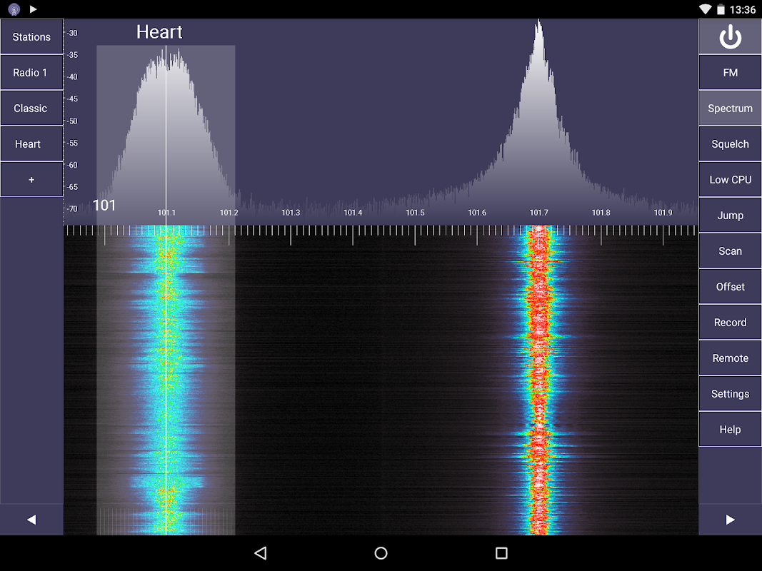 Trasforma qualsiasi telefono cellulare o tablet Android in uno scanner radio portatile con analizzatore di spettro. Ascolta e registra live le stazioni radio FM stereo con RDS, bollettini meteo, stazioni di emergenza, traffico taxi, comunicazioni degli aeroplani, audio delle trasmissioni televisive analogiche, trasmissioni dei radioamatori amatoriali, trasmissioni digitali e molti altro! A seconda dell'hardware utilizzato, la copertura delle frequenze radio può dai 50 MHz fino ai 2.2 GHz. Attualmente vengono demodulati segnali di trasmissioni FM, AM, FM a banda stretta, banda laterale superiore (USB) e banda laterale inferiore (LSB).