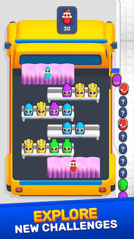 Seat Sort è un gioco di puzzle divertente e interessante! Prova a sistemare i personaggi colorati nei sedili finché tutti i colori non si trovano nella stessa fila. Un gioco stimolante ma rilassante per allenare la mente!