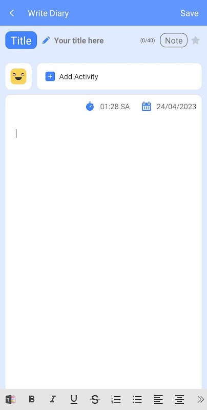 Secret Diary è un diario con serratura. Puoi impostare la password del diario e proteggere il tuo diario segreto da occhi curiosi