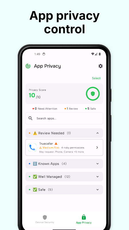 Security & Privacy Scanner controlla il tuo telefono per individuare eventuali rischi per la privacy e ti mostra esattamente come risolverli. Nessun discorso tecnico confuso, solo spiegazioni chiare