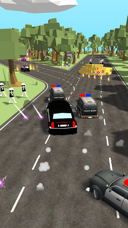 Use your security cars to stop attackers. you can sacrifice them to reach finish line !