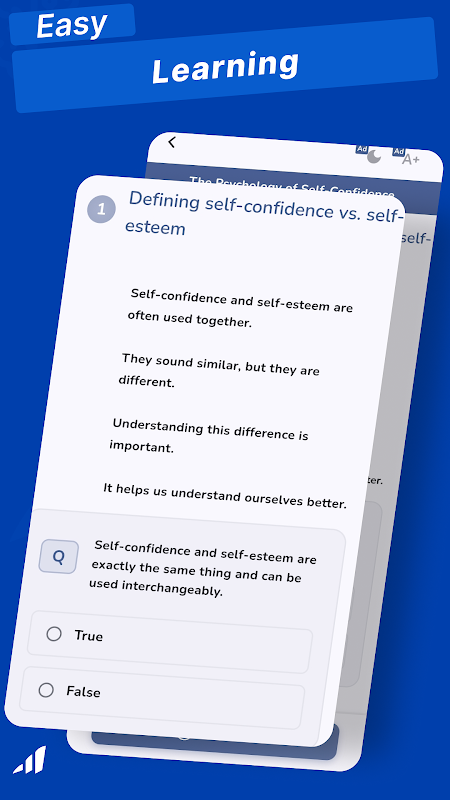 • Contenuti strutturati: esplora i principi dell'autostima passo dopo passo, dalla comprensione dell'autostima alle tecniche avanzate di mindset.