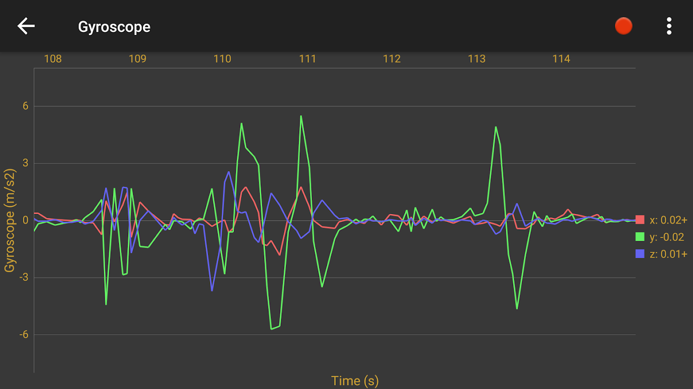 SensorLab in grado di registrare i dati provenienti da tutti i sensori di cui sopra nei precedenti per la condivisione (in formato .csv) o la riproduzione all'interno della app.