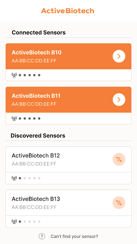 Benvenuti in Sensor Manager, l'applicazione mobile definitiva progettata da Active Biotechnology Limited (ABC) per connettere e gestire perfettamente i tuoi sensori ABC senza alcuna necessità di programmazione. Che tu sia un professionista, un ricercatore o uno sviluppatore, Sensor Manager semplifica le interazioni con i sensori, permettendoti di concentrarti su ciò che conta veramente.