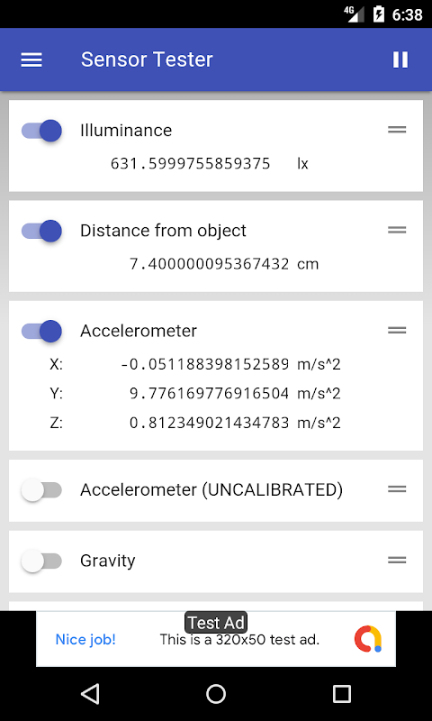Semplice app che testa i sensori del dispositivo.