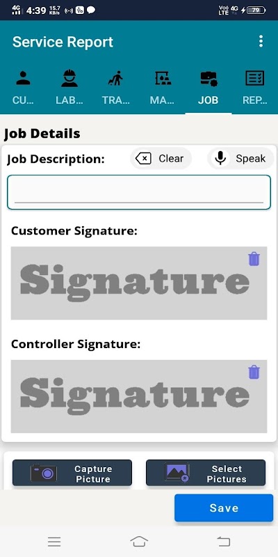 5. Images:Add multiple images by capturing photos using camera and picking photos from gallery ,voice recognition (Speech to text) for Job Description
