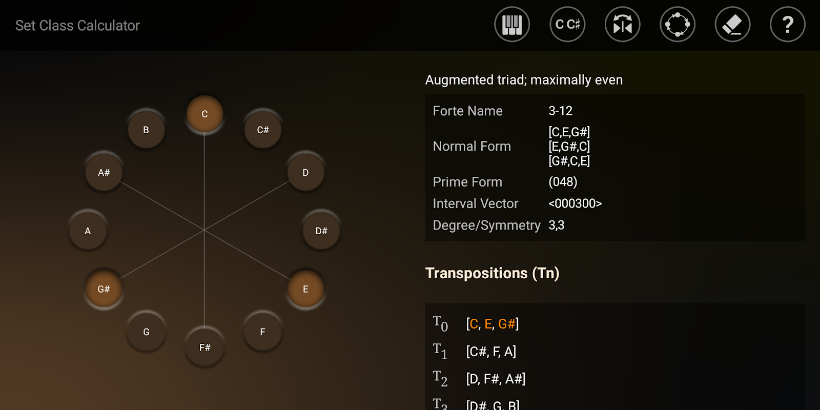 Calcola facilmente le forme e le trasformazioni dei set di classi di tonalità.