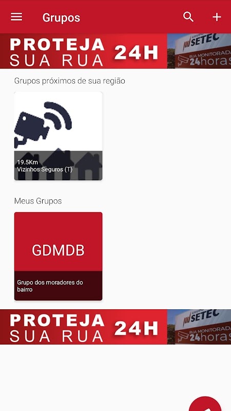 Permite formar grupos privados ou públicos, ideal para rede de vizinhos protegidos, associações de comerciantes ou similares, de forma profissional com cadastro, identificação e gerenciamento de seus usuários.