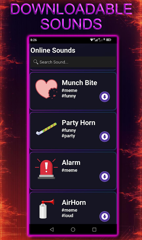 Ampia varietà: include suoni divertenti, effetti forti, rumori divertenti, suoni di allarme e molto altro. 🎭