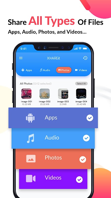 Con Xhareit puoi condividere file da uno Smartphone Android a un altro, indipendentemente dal marchio. Seleziona le tue app, e-book, pdf, immagini o qualsiasi altra cosa e condividila con i tuoi amici a una velocità ultraveloce senza dati.