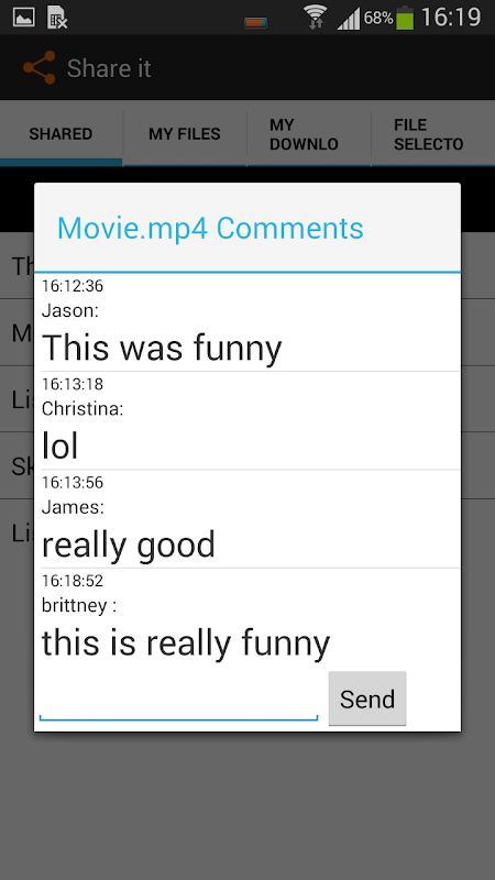 File di Social sharing app per caricare e scaricare file e condividere commenti su di loro