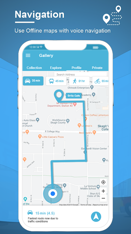 🗾 GPS Navigation : See gps map route and navigate to any destination place step by step with detailed gps route guide.