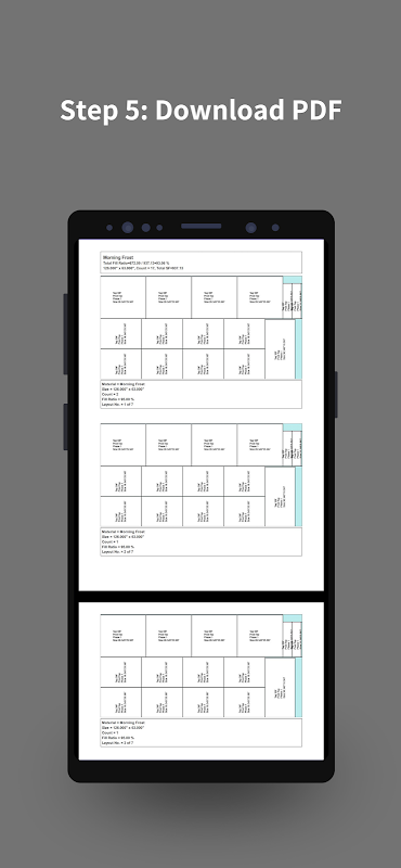 - Automatically calculate fill ratios, the number of sheets needed, and the area of sheets and parts