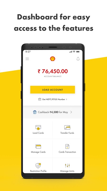 Puoi visualizzare le tue carte prepagate Shell, il saldo e le transazioni effettuate sulla carta. Puoi utilizzare il codice QR di Virtual Cards per effettuare transazioni. Puoi anche caricare la tua carta con denaro utilizzando Payment Gateway.