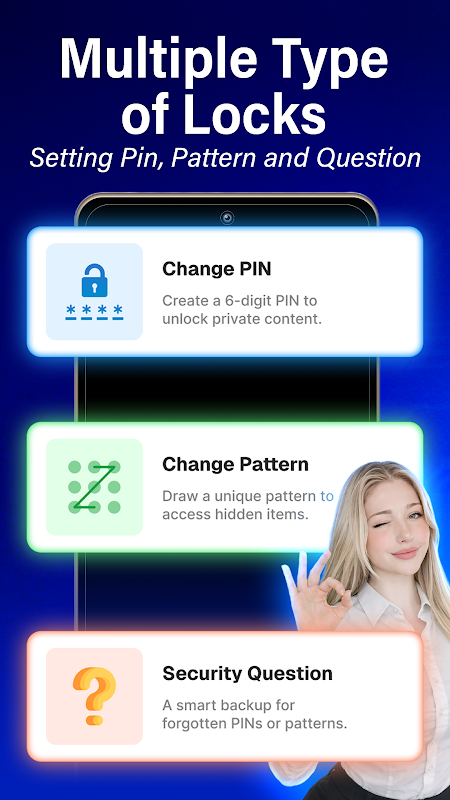 Rendi la tua schermata di blocco unica! Scegli tra una varietà di bellissimi temi e sfondi per personalizzare l'aspetto del tuo spazio sicuro.