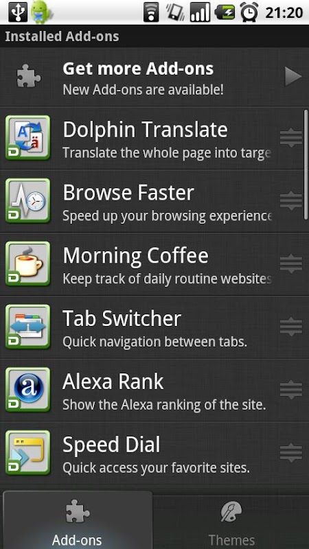- Change Dolphin themes (colors) or switch to another open tab conveniently by shaking your mobile phone