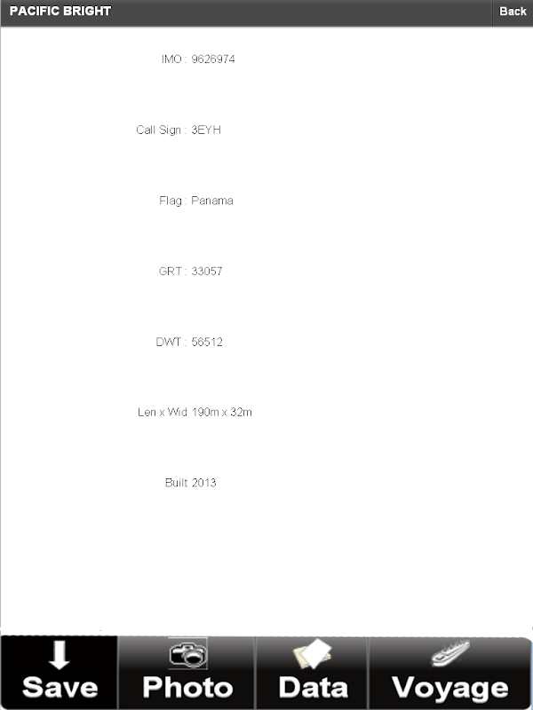 Inoltre si otterrà l'navi ultima posizione con AIS e le informazioni di viaggio.