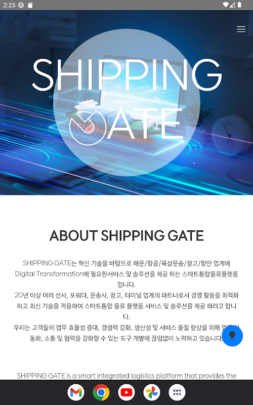 SHIPPING GATE è una piattaforma logistica integrata intelligente che fornisce servizi e soluzioni necessari per la trasformazione digitale alle industrie di spedizione/aereo/trasporto terrestre/magazzino/porto sulla base di una tecnologia innovativa.