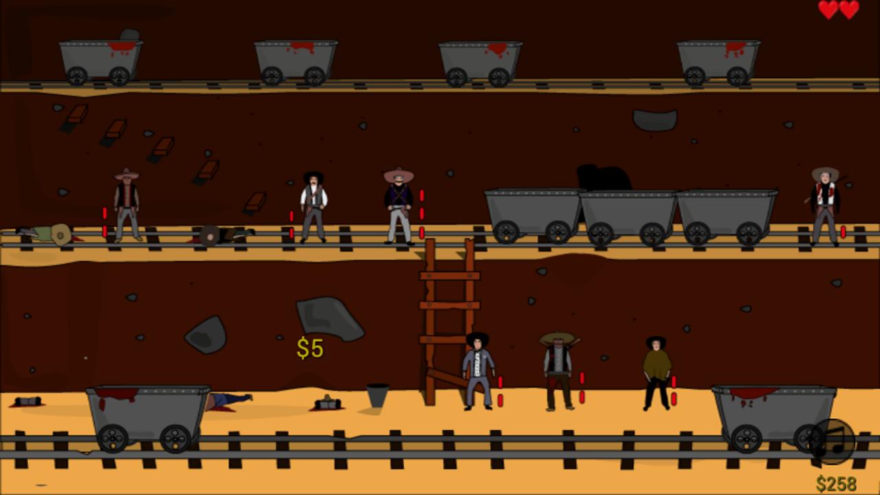 For defeating enemies and bosses you gain gold that can be used in the shop. Either for buying new weapons, such as guns, rifles, sniper and shotguns, or upgrading your vest, boots and sheriff hat. You can also hire an extra gun to help you shoot the bad guys. A Sheriff's work is hard, you never know when you might need an extra gun by your side.