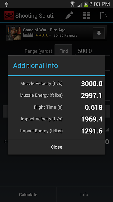 Shooting Solution Free is an accurate, easy to use ballistics calculator. It utilizes a simple main interface, but includes more advanced features, such as table creation and graphing. Environmental conditions, which can be updated based on GPS location or latitude/longitude, are accounted for in the calculations.