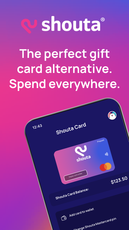 Niente più carte regalo perse e fondi sprecati. La Shouta Mastercard viene aggiunta al portafoglio digitale del telefono, pronta per essere spesa ovunque.