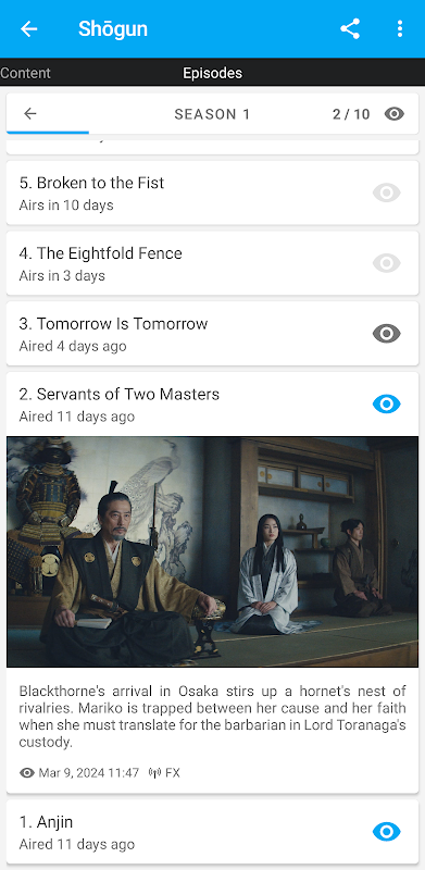 NOTA: poiché Show Tracker 2 riceve tutte le informazioni da TMDb, la data di uscita di ciascun episodio non è specifica per paese. È sempre la data di uscita internazionale!
