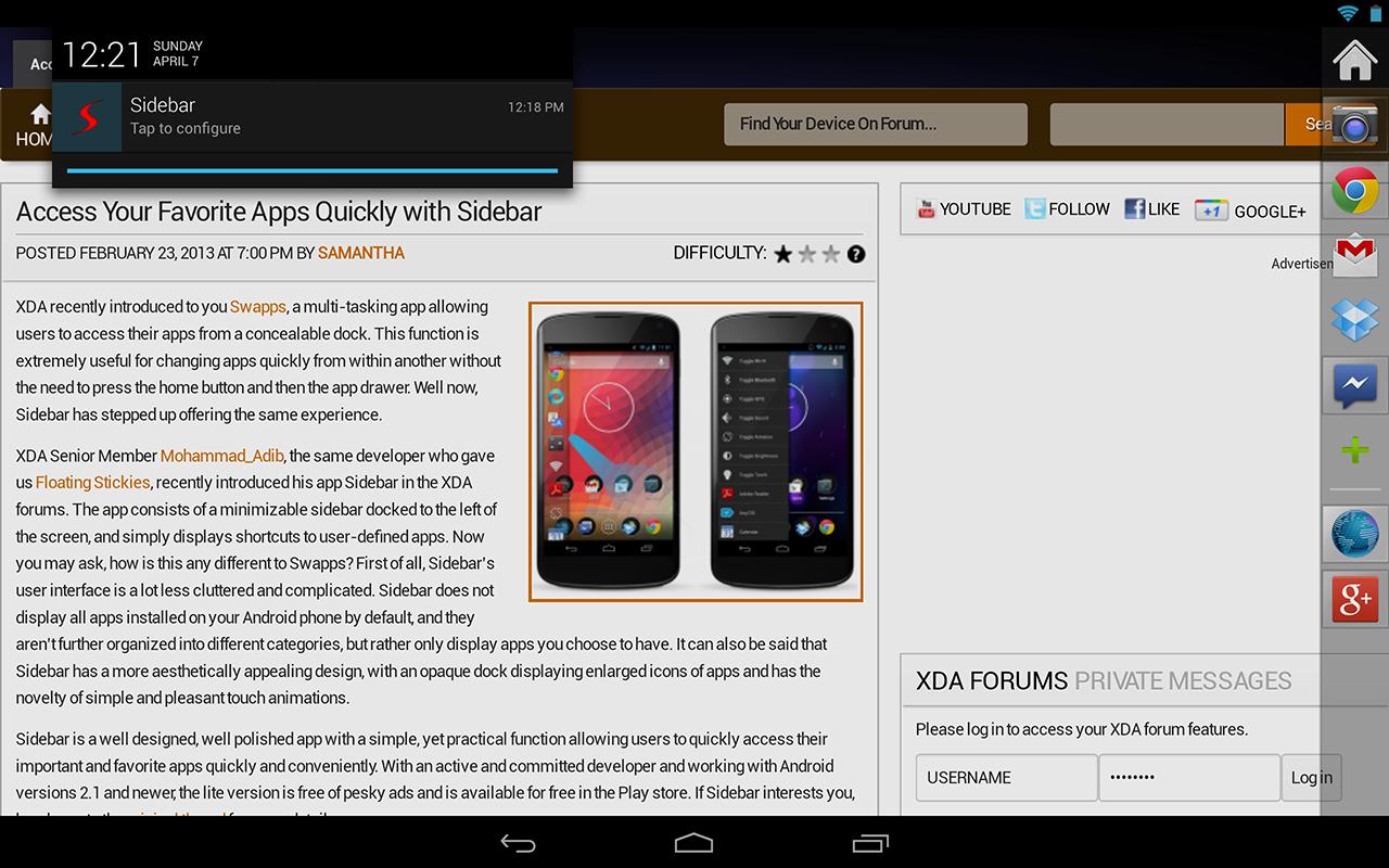 - Sidebar è stato presentato in prima pagina di XDA e su XDA TV