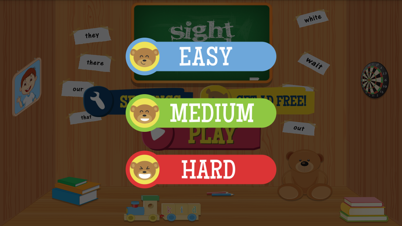 This kids matching game includes 3 difficulty levels to accommodate a wide range of ages. The game will adjust to fit your phone or tablet. Download the Sight Word Matching game for free.