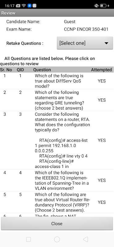 Viene fornita una spiegazione completa per ogni domanda in modalità Apprendimento e l'ambiente d'esame effettivo viene simulato in modalità Esame. Sono fornite opzioni per salvare i risultati e rivedere le domande.