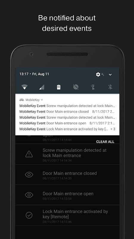App MobileKey per la gestione di stato DM, elenchi accessi, aperture remote, Key4Friends, programmazione e ricezione dei messaggi dalla gestione eventi.