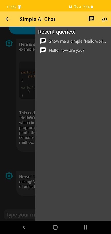 ‣ Esplorazione degli argomenti: scopri un'ampia gamma di argomenti e partecipa a discussioni significative. Dalla tecnologia e dalla scienza all'intrattenimento e allo stile di vita, la nostra app Simple AI Chat fornisce approfondimenti e informazioni su diversi argomenti.
