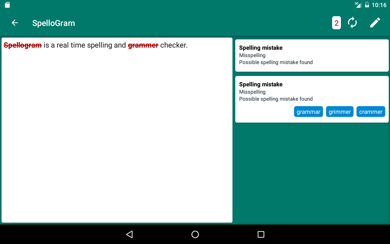 Con Spellogram, è possibile controllare e correggere ortografico e grammaticale del 7 lingue in tempo reale con un solo click. È possibile correggere i documenti con il miglior consiglio possibile fornito dal motore di lingua intelligente o facendo le proprie modifiche.