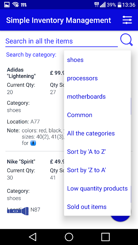 Questa applicazione è un facile da usare e molto semplice da utilizzare. Facile aggiunta di nuovi prodotti con il tasto "+" e il riempimento campi voluto.
