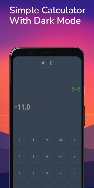 L'app Simple Calculator è progettata per rendere i calcoli giornalieri facili e veloci. Offre un'interfaccia semplice per eseguire operazioni aritmetiche di base come addizione, sottrazione, moltiplicazione e divisione. L'app dispone anche di una modalità di visualizzazione chiara e scura, che consente agli utenti di passare da uno sfondo chiaro a uno scuro per soddisfare le proprie preferenze e ridurre l'affaticamento degli occhi in diverse condizioni di illuminazione. L'app è semplice, efficiente e conveniente per l'uso quotidiano, fornendo agli utenti uno strumento affidabile per i calcoli di base.