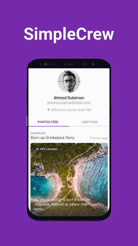 SimpleCrew è una piattaforma di marketing per team di strada progettata per aiutare i team di strada a caricare foto per dimostrare l'avanzamento della campagna e segnalare il proprio lavoro a clienti e gestori, senza uccidere la batteria del telefono, arrestarsi in modo anomalo o disinstallare e reinstallare l'app. Non ritarderà mai i tuoi rapporti, mangerai i tuoi dati o congelerà o ritarderà quando ne avrai bisogno per funzionare.
