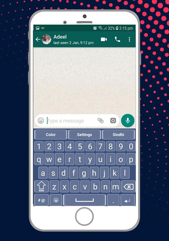 Tastiera Sindhi per digitare su whatsapp. Inglese, la tastiera Sindhi con emoji è letteralmente piena di temi di sfondo colorati al massimo e skin per tastiere con emoji e faccine.