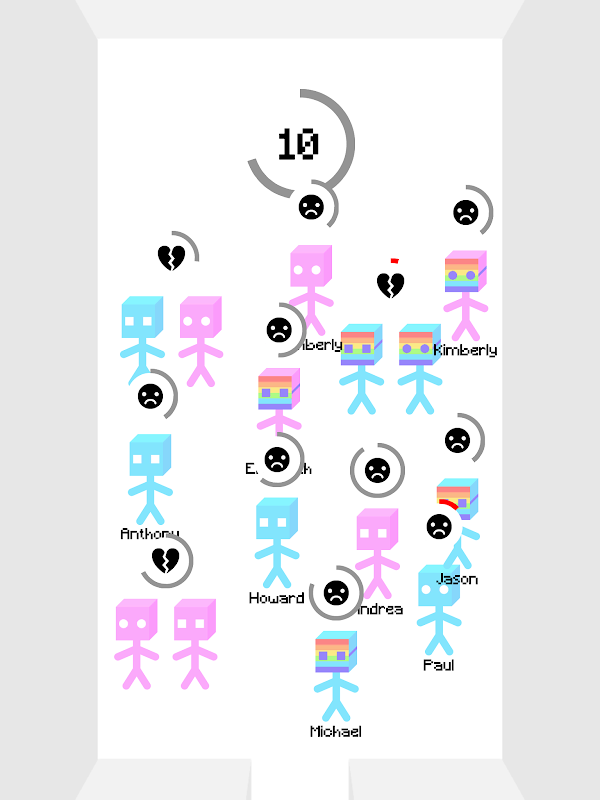 Tap on the endless spawning singles entering the room and drag them to a compatible partner.