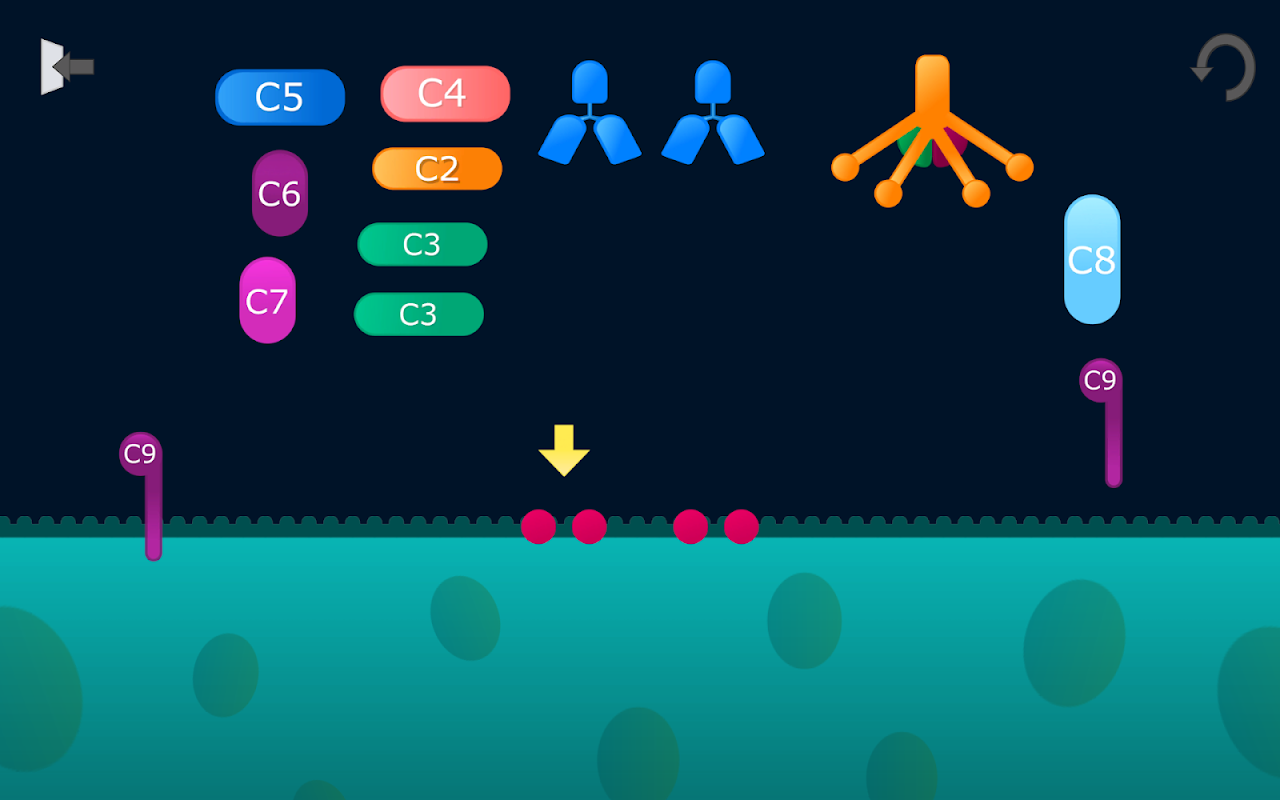 Esperienza interattiva che consente all'utente di ordinare il sistema del complemento (classico, alternativo e lectine), rafforzando in modo giocoso e interattivo l'apprendimento ottenuto in classe.