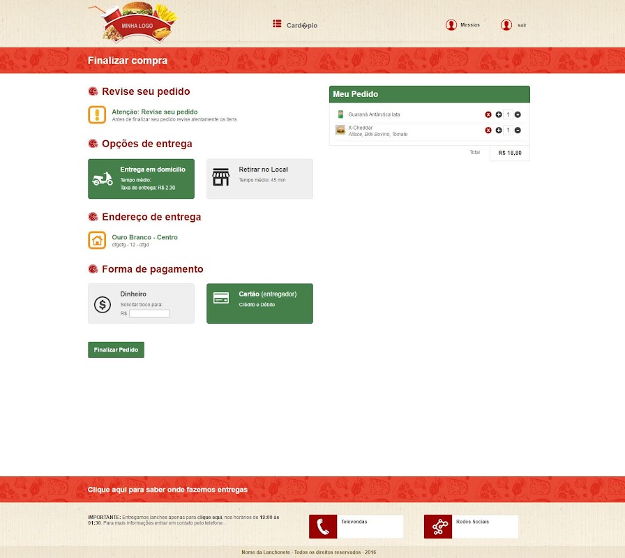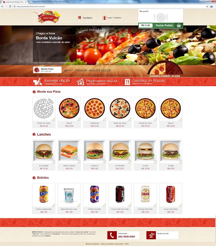 Online system for ordering pizzas, snacks, dishes, portions. Demonstration