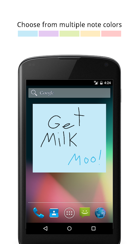 Così facile è impressionante. Aggiungere il widget per la schermata iniziale, quindi toccare su di esso per far apparire il blocco da disegno. Scrivere e disegnare tutto quello che vuoi, senza mai lasciare la schermata iniziale. Scegli i tuoi colori per la vostra matita e blocco note. Caricare una foto dalla fotocamera su una nota. Aggiungi il maggior numero di note per la schermata iniziale come si desidera, e ridimensionare il blocco note alle proprie esigenze. Anche fare le note trasparenti, quindi tutto si disegna apparirà destra sopra la carta da parati.