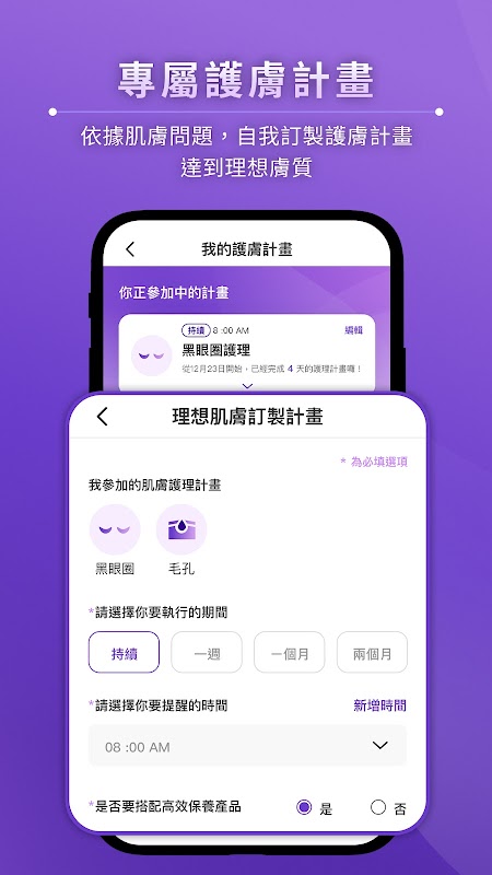 In base ai tuoi problemi di pelle, puoi scegliere un piano di cura della pelle preparato da un dermatologo, organizzare il tempo per la cura della pelle in modo appropriato e aiutarti a raggiungere la qualità della pelle ideale!