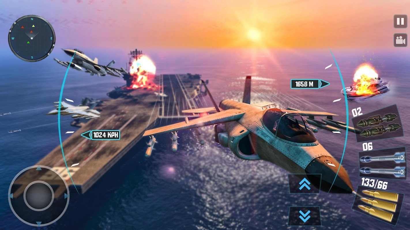 Sky Fighter Plane - Flight Pilot Battle Simulator è un avvincente gioco di simulazione che ti darà una battaglia di guerra mondiale come un'esperienza con una grafica e un tema sorprendenti. Oscilla con i tuoi caccia a reazione sullo schermo e uccidi i nemici che viaggiano per la tua strada. Con l'avventura che ti si presenta in questo gioco di Jet Fighter, il divertimento con il brivido è garantito. Quindi preparati a sentire la pelle d'oca, perché sei il Jet Fighter. Sgancia il tuo super Jet Fighter dai missili SAM SAM, evita i radar. Seleziona le tue armi preferite e distruggi le navi da guerra, spara elicotteri.