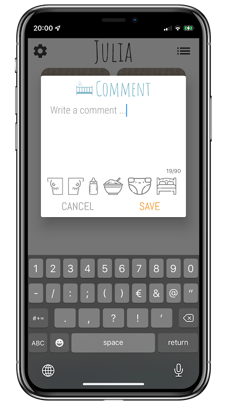 Sleep Log 2.0 tiene traccia della durata del sonno, dei pasti, della durata del pianto e dell'ora di coricarsi con la semplice pressione di un pulsante. Le abitudini di tuo figlio vengono quindi individuate in un PDF pulito e di facile lettura, che può essere stampato o condiviso con il tuo pediatra o tutore tramite app di posta o chat. Inoltre, mostra le statistiche giornaliere per la durata del sonno e del pianto e i pasti.