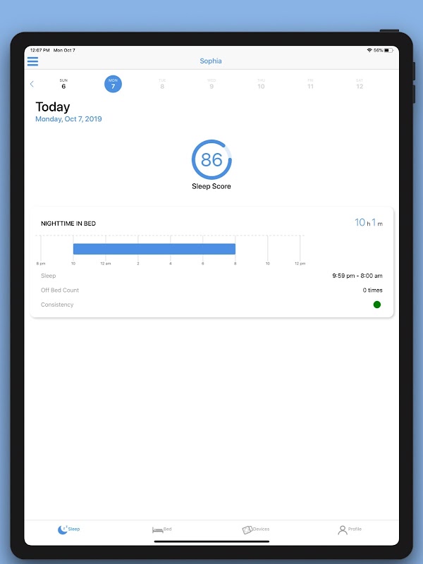 App complementare al sensore da letto Sleepsense, che ti consente di rivedere la cronologia del tuo sonno, ottenere informazioni sul tuo profilo del sonno e inviare aggiornamenti in tempo reale ai tuoi cari.