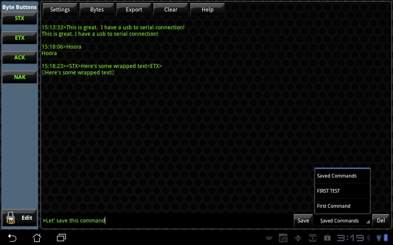 Slick USB 2 Serial Terminal allows you to use your tablet with your Prolific or FTDI based USB to Serial adapter and connect to your serial devices.