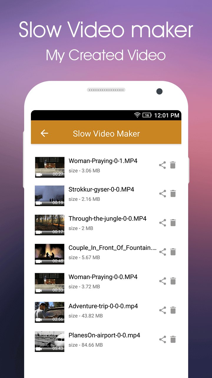 Create slow videos using Slow Video Maker!!! You can now easily and quickly convert any of your mobile video into Slow motion video. You can create Slow motion or fast motion video really fast and quick. Select factors from available list. Adjust Speed of video by setting up the factors given. Slow Video Maker converts all types of video and audio files including MKV, MP4, MP3, AVI, MOV, Ogg, WAV, etc. Excellent media library for converting videos into slo-mo videos. Create your own video maker with your required speed.