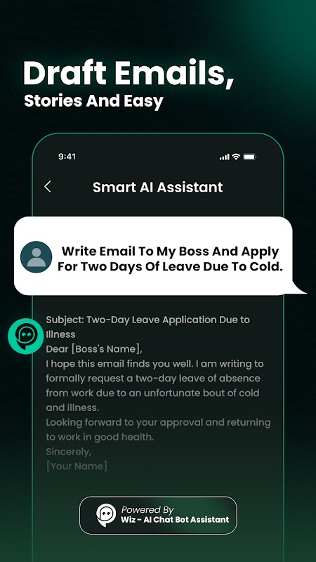 Ti presentiamo Wiz: AI Chat Bot Assistant, il tuo compagno di chat AI definitivo per conversazioni intelligenti e risposte istantanee. Wiz è il tuo compagno di SMS preferito con tecnologia di intelligenza artificiale. App di chat AI, puoi impegnarti in conversazioni stimolanti con un'IA di chat tanto spiritosa quanto informata. Che tu stia cercando una chiacchierata amichevole o un fidanzato AI, Wiz ti copre. è il tuo assistente chat avanzato basato sull'intelligenza artificiale in grado di comprendere e rispondere alle tue richieste con notevole precisione. Chatta su una vasta gamma di argomenti.