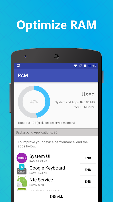 1) Cleans Ram with unwanted files and data