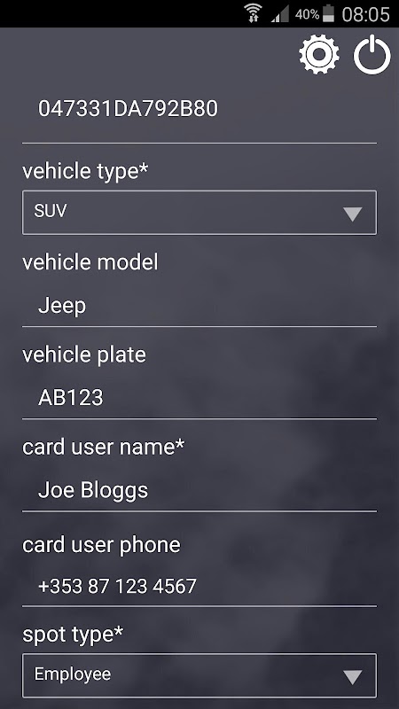 For identifying an authorized parking space user NFC based customer id cards are used.